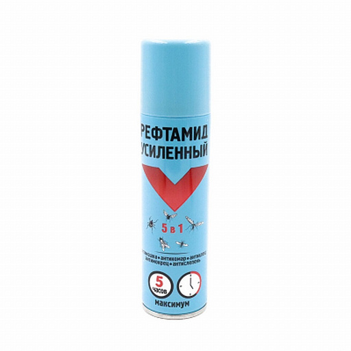 Средство репеллент от торговой марки «Рефтамид» применяется для эффективной борьбы с кровососущими насекомыми. В его состав входит увеличенное количество действующих веществ, обеспечивающих более длительную (5 часов) и надёжную защиту от комаров, мокрецов, москитов, мошек, слепней, блох, а также таёжных и лесных клещей.